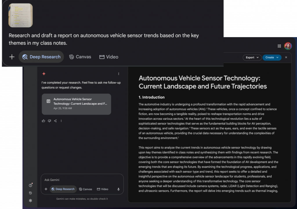“Now you can start a market analysis for a new product by having Deep Research analyze your team’s initial brainstorming docs, related email threads and project plans. Or you can build a competitor report about a rival product that cross-references public web data with your strategies, comparison spreadsheets and team chats.”