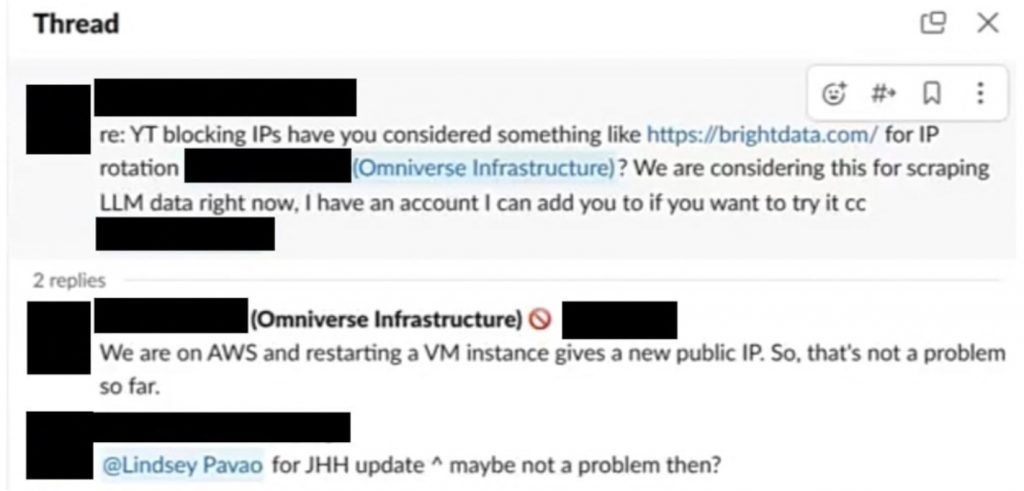 nVidia was said to use a video-downloading program combined with virtual machines that rotated IP addresses to avoid detection and blocking; which enabled the “mass extraction of, at times, eighty years of video content per day.”