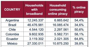 LatAm: Annualized, online piracy losses exceeded US$8 Billion. Pay TV operators...